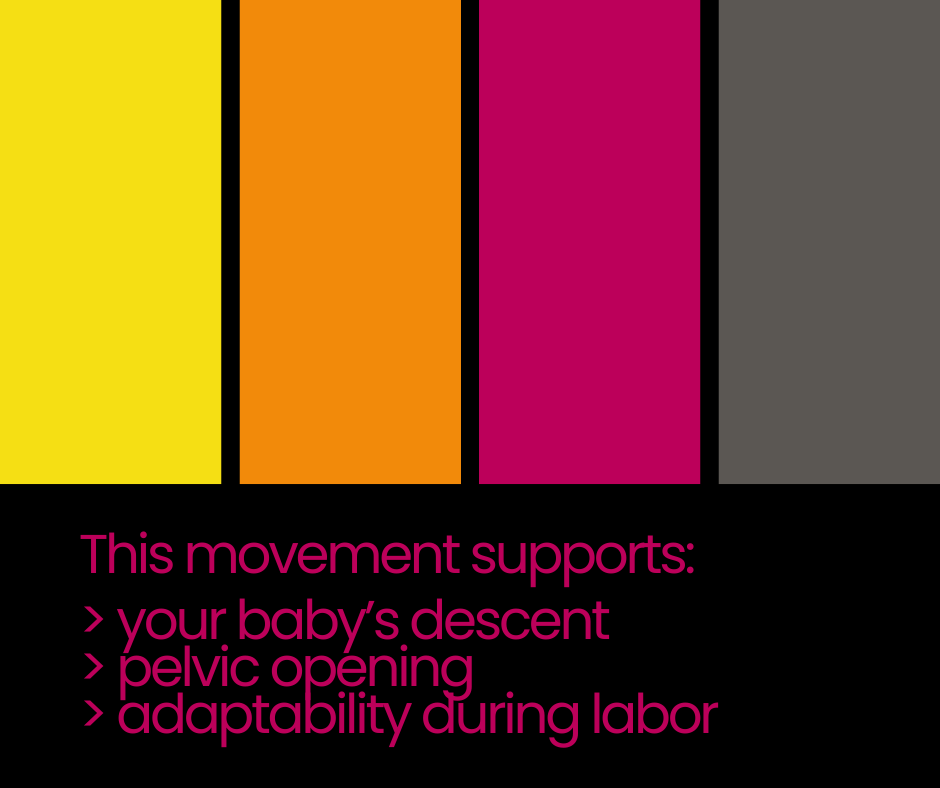 This movement supports baby’s positioning and descent, as well as the body’s ability to respond to changing demands throughout pregnancy.