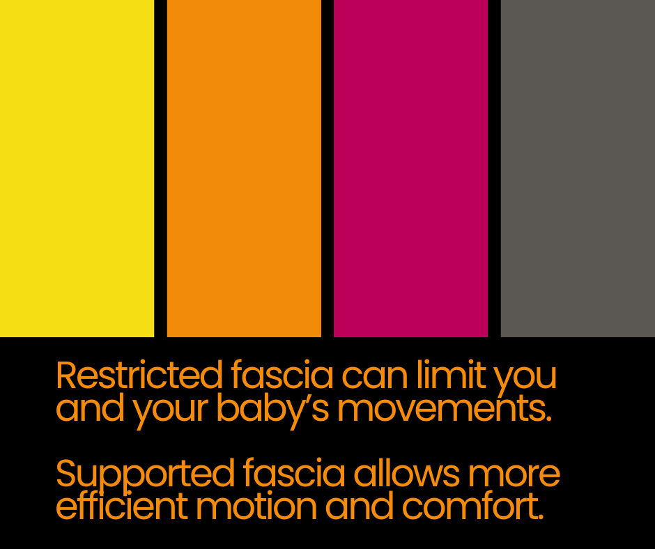 Fascia can also hold tension. Changes in posture, repetitive movement, stress, and previous physical experiences can all influence how fascia behaves. During pregnancy, tension in the fascial system around the hips, pelvis, lower back, and abdomen can affect comfort and mobility.